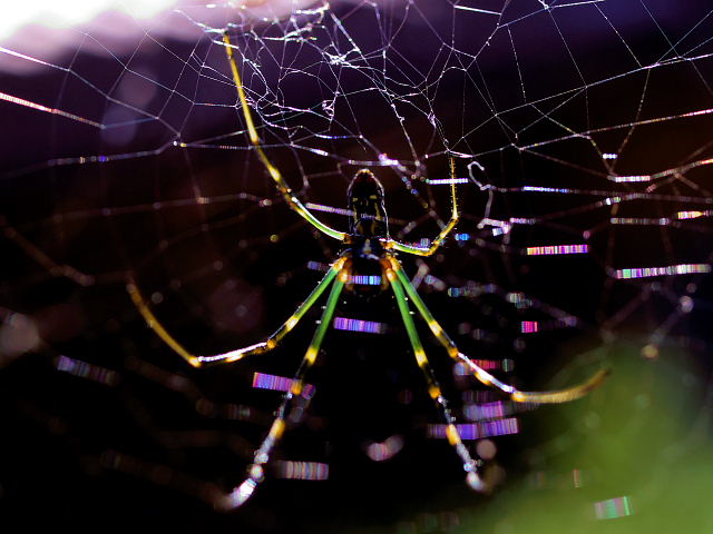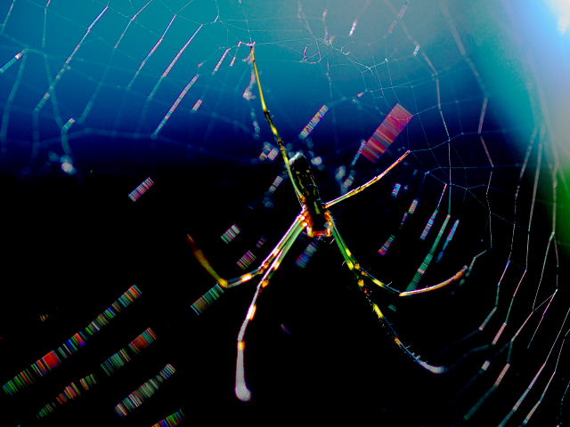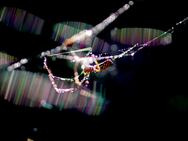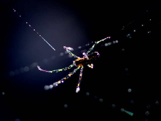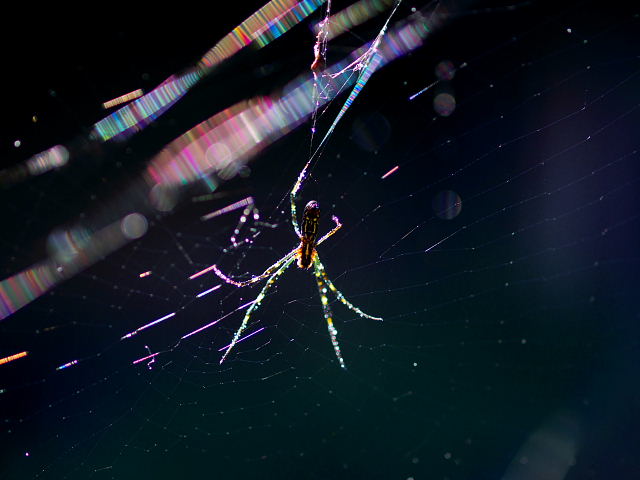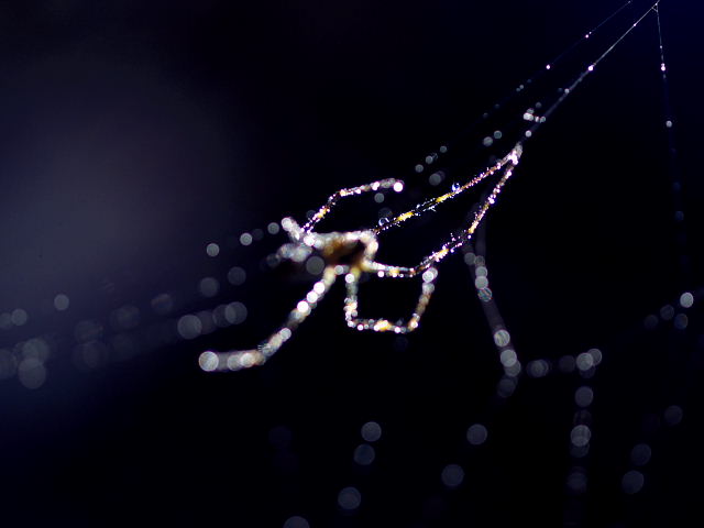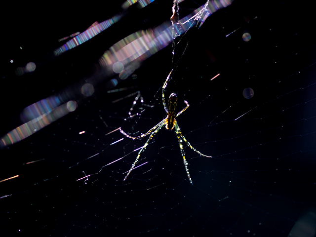 この2枚が我が輩の全体像だ、翡翠のように輝く足、張り巡らした巣も光り輝いているのだ